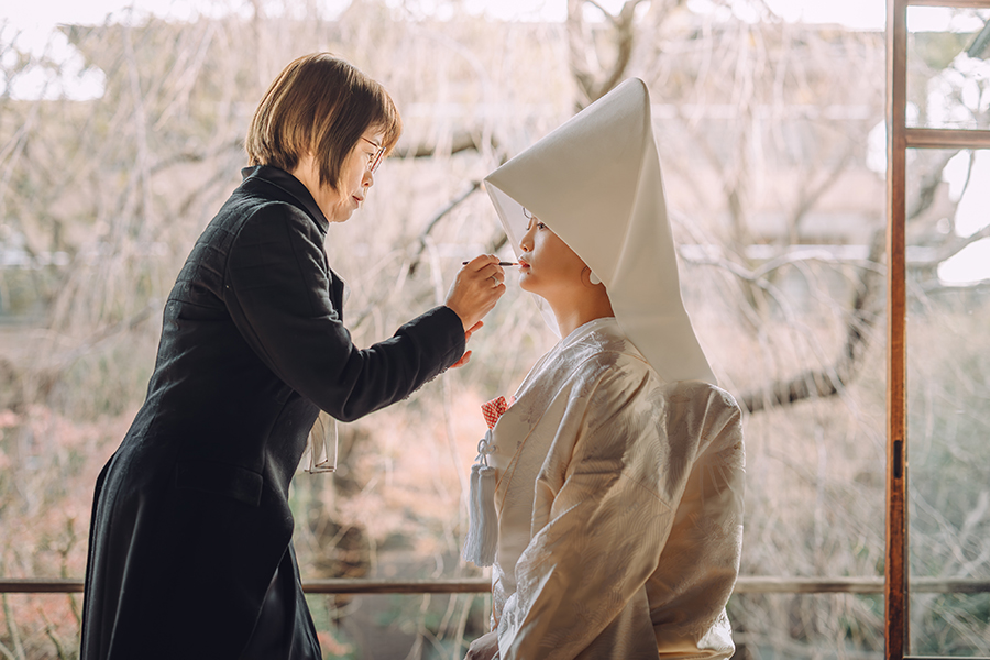 着物の格付けの中で最上級の五つ紋をあしらった黒紋付きと縞の袴が最高の装いを演出します。
