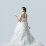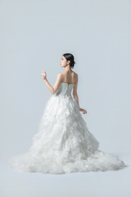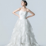 飾りすぎないナチュラルなデザインで、トレーンをふんわり包み込むフリルがボリューミーで美しい1着。
