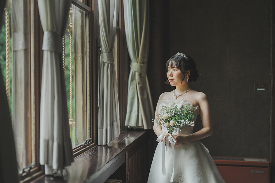 撮影のために素敵にお着替えをしたご新婦様のソロショットを可愛く撮影させていただきます♪