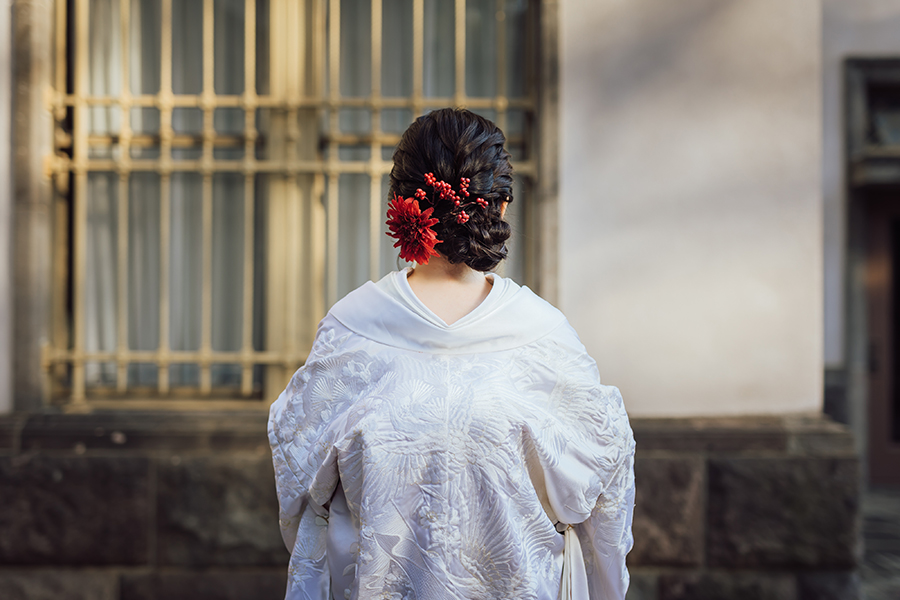 白無垢といえば ” 綿帽子 ” を使った写真を撮影してみたいですよね、ぜひ衣装合わせの際などにご検討くださいね♪